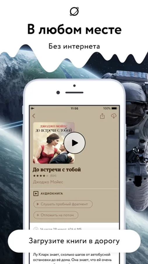 Аудиокниги доступны где угодно: в машине и на природе, дома перед сном или во время уборки. Сохраните нужные книги в память устройства и слушайте офлайн. Интернет не понадобится.