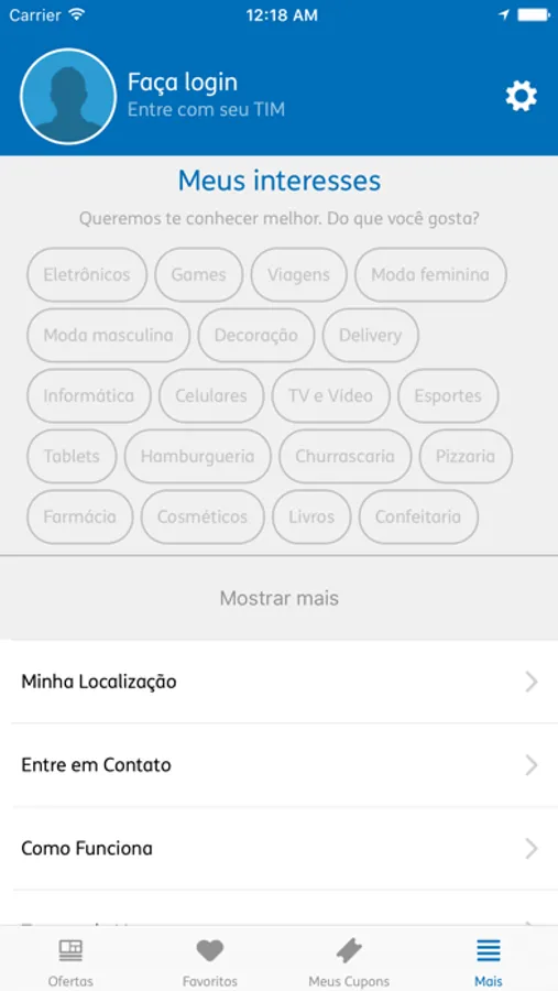 - Interesses: escolha os seus e nós priorizaremos as ofertas que tem a sua cara na ordem de visualização.