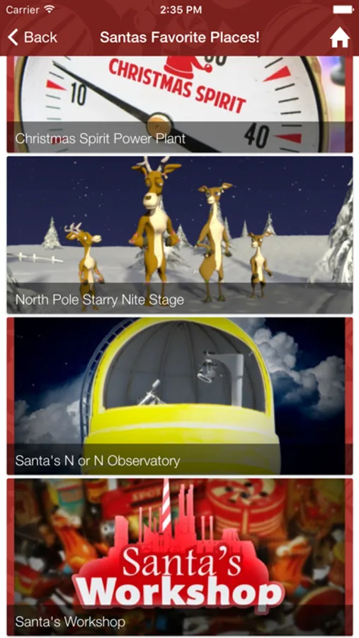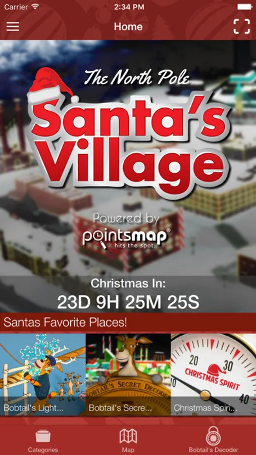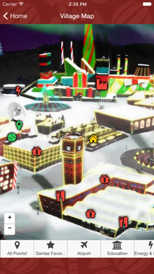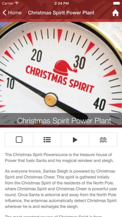 Video Ideas has painstakingly gathered this information and created the Santa's Village App as our Christmas Gift to you! Tap any of the points in Santa's Favorites on the home page or any point in the category listings and explore the point. Tap the map icon and see where it is on a map of Santa's Village. Interesting Points you can explore include: Santa's Naughty or Nice Observatory (where Santa watches everyone to see if they have been good this year), The Candy Factory, The Claus' Mountain Resort, Santa's Workshop, the SnowTrans system, The Christmas Spirit Power Plant and many more.