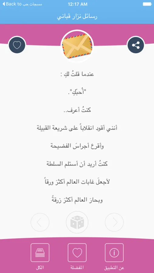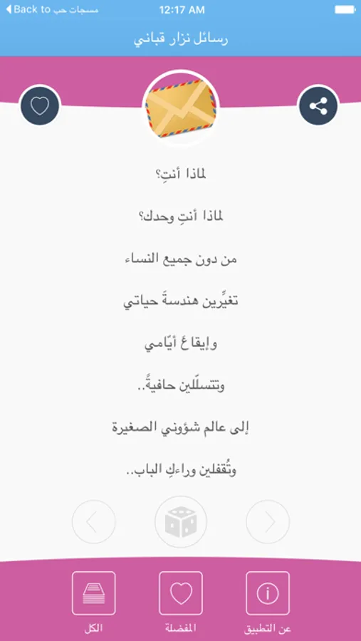 تطبيق مسجات نزار قباني لاروع الرسائل التي تستطيع اهدائها لصديقك او لحبيبك او لغيره من الناس , يمكنك من خلال التطبيق العمل الكثير من الامور منها :-