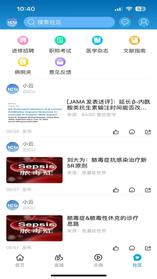 云ICU是专注于急危重症领域的医学交流与服务平台,主要提供专家直播、点播课程、专家咨询、在线速递、指南解读、考试题库等服务,目前超过2000个专题视频课程。云ICU让学习和诊疗更便捷!