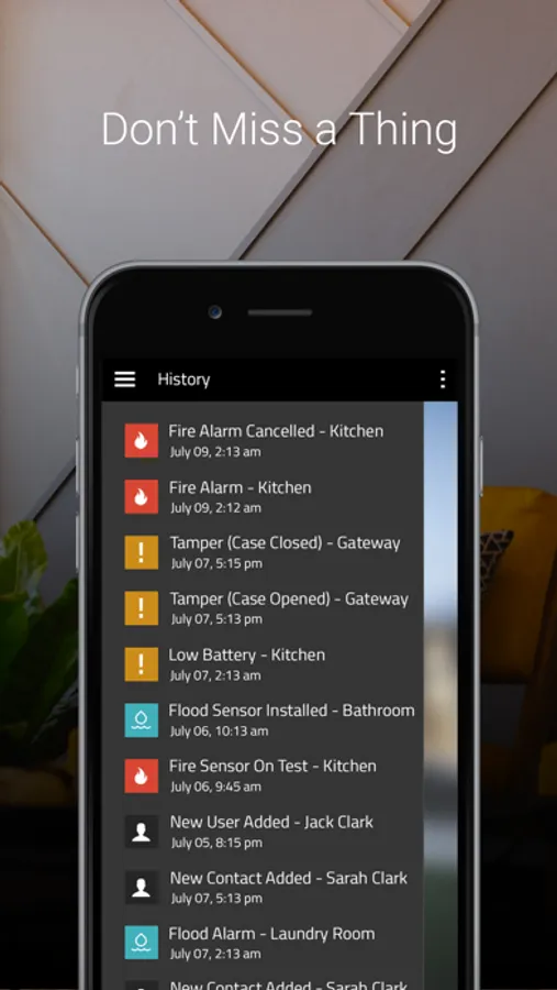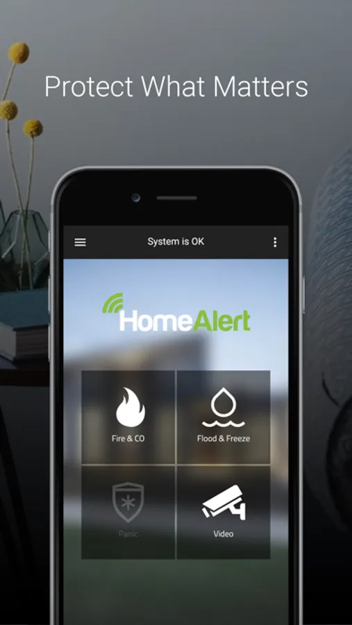 Use of this app requires the purchase of a HomeAlert system, acceptance of the terms of service, payment of ongoing service charges, use of existing smoke and CO alarms in the home, and a working internet connection.