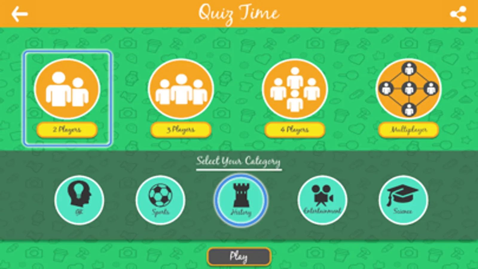 There are five main quiz categories – G.K, Sports, history, Entertainment and Science you can choose from them as you wish, to play with any number of players you want to.
