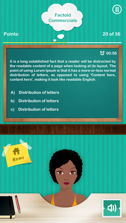 There are 2 categories (Factoids and Catchphrases) and 5 subcategories: (TV, Movies, Sports, History and Commercials) to choose from.