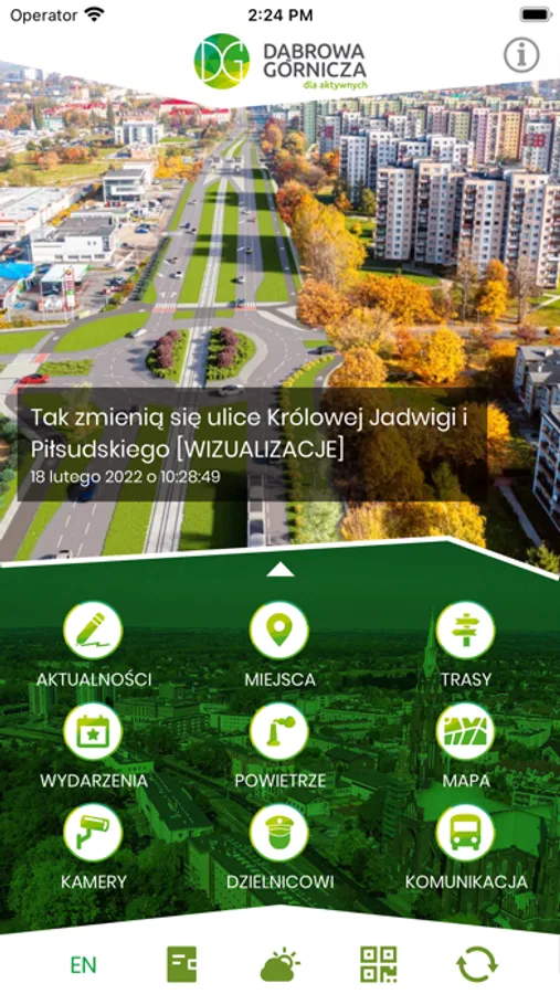 Oficjalna aplikacja prezentująca miasto i okolicę przeznaczona jest nie tylko dla turystów, ale i mieszkańców Dąbrowy Górniczej. Ten multimedialny przewodnik oprowadza po ciekawych miejscach oraz prezentuje wydarzenia kulturalne i sportowe. Znajdują się tu szczegółowe opisy tras spacerowych i rowerowych, wzbogacone o funkcję nawigacji. Podstawą części przewodnikowej jest obszerna baza noclegowa i gastronomiczna miasta, a także oferta kulturalna. Ciekawym rozwiązaniem jest zaprezentowanie panoramy Dąbrowy Górniczej w formie rozszerzonej rzeczywistości (AR). Użytkownicy aplikacji mogą także podglądnąć obraz z kamer miejskich, skorzystać z wyszukiwarki połączeń komunikacji, sprawdzić najświeższe aktualności i prognozę pogody. Jednym słowem, mobilny przewodnik zawiera narzędzia i funkcjonalności przydatne wszystkim tym, którzy chcą aktywnie spędzić czas w Dąbrowie Górniczej.