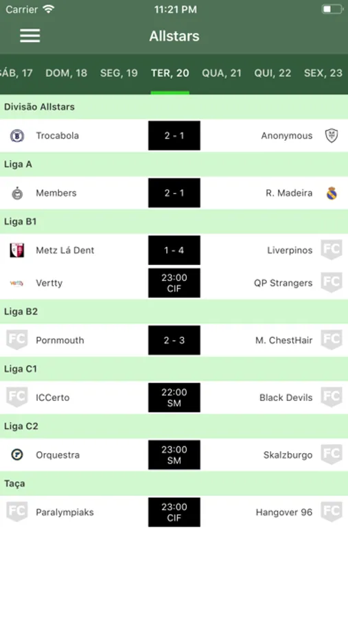 Torneio de futebol Allstars - Acompanhe o torneio e a sua equipa