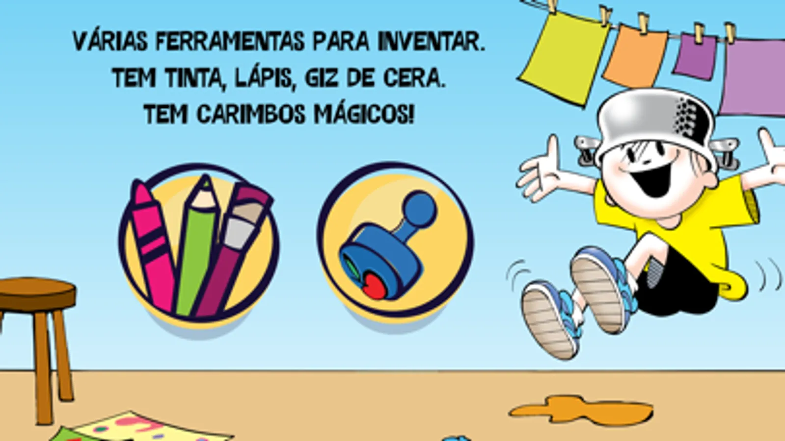 Inventar é se divertir. E para isso dá para pintar imitando tinta, lápis e giz de cera. Para uma maluquice especial, o jogo ainda conta com carimbos mágicos.