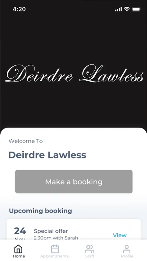 The Deirdre Lawless app makes booking your appointments and managing your loyalty points even easier. You're just a few taps away from feeling good and looking great!