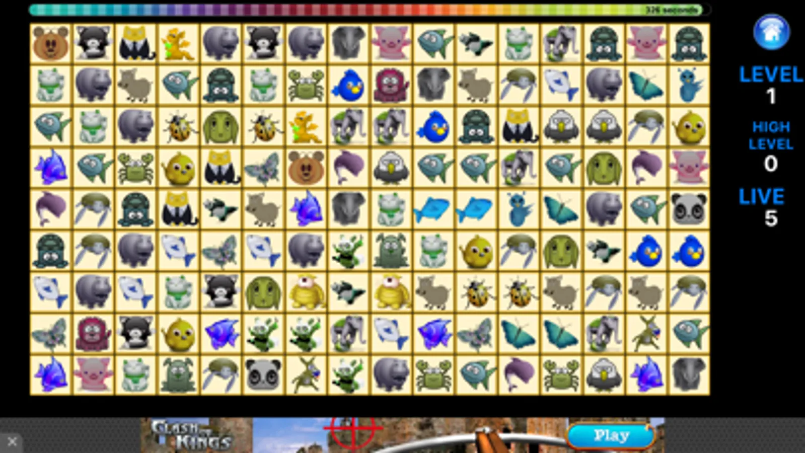 - Find 2 cards with the same kind that can be connected in 3 or less than 3 lines to remove them out of board.