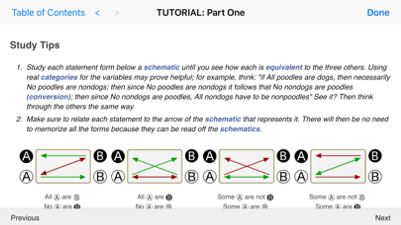 Instead of considering isolated statements as the components of arguments, such as major premise, minor premise, and conclusion, this new approach bundles each statement with its equivalents and each bundle is represented by its own “schematic” of arrows. The premise schematics can then be dropped in place along side each other where their juxtaposition displays whatever conclusion, if any, is entailed. The user only needs to learn how to select the correct premise schematics and how to follow the arrows for a conclusion.