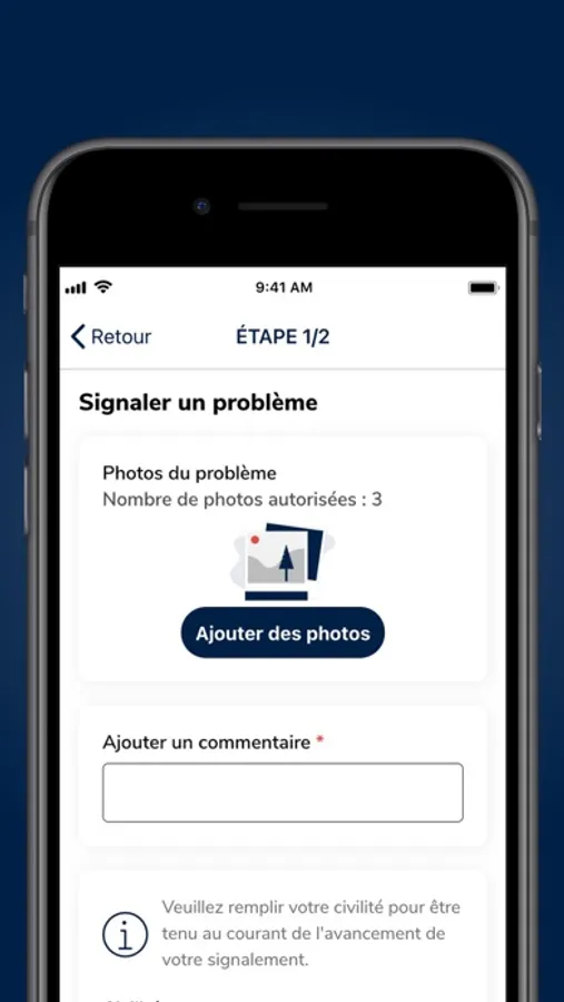 - effectuer des signalements en temps réel (voirie, éclairage, propreté…)