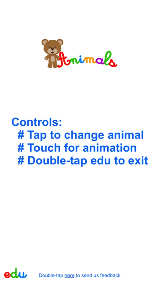 - Before handing over the device to your child, start the application, display the first animal, then press the Home Button three times to lock.