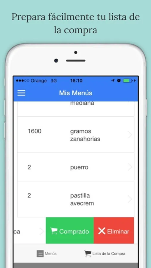 - Create easily your customized shopping list selecting the ingredients of the chosen recipes