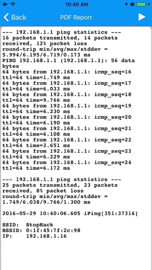 The ONLY IOS packet generation tool that supports fast ping, multicast/broadcast and ToS(type of service) or QoS(Quality of service) setting, jumbo packet(large MTU testing with fragmentation flag off) etc advanced options, it is not only for network admin of Enterprise network but also for regular users.