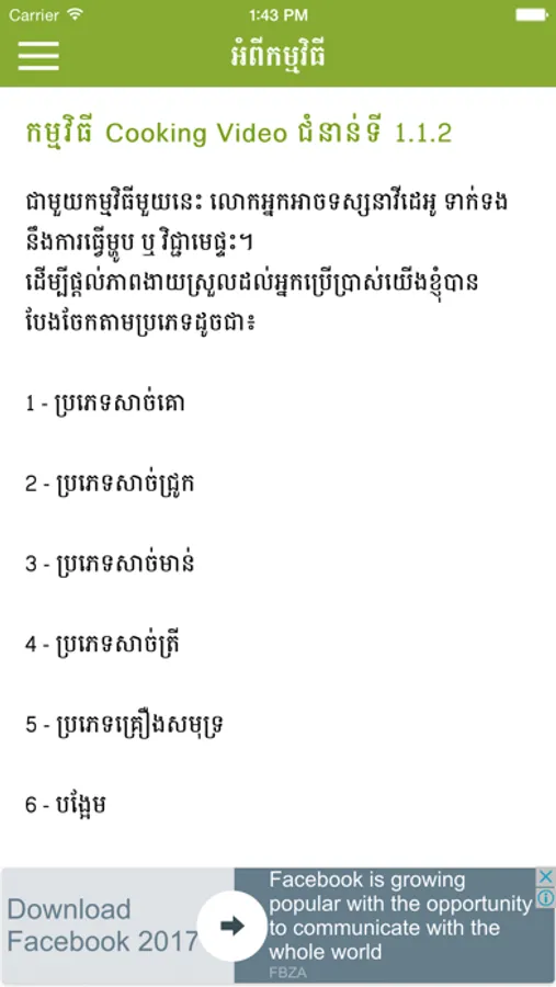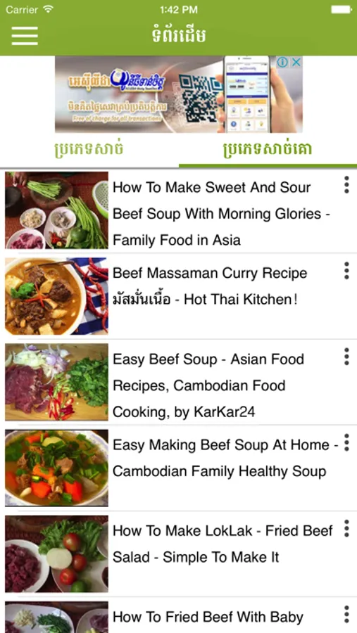 This application collect cooking video most Khmer traditional food show by chef restaurant​ or housewife. The all cooking video fried, roast, soup group by category as below: