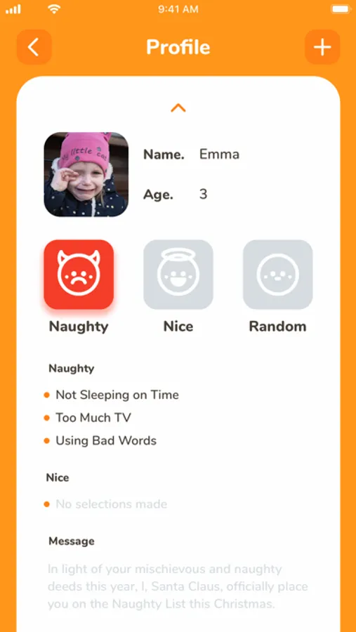• Outcome can be set to Random, Naughty, or Nice on the ‘Parents Only’ page