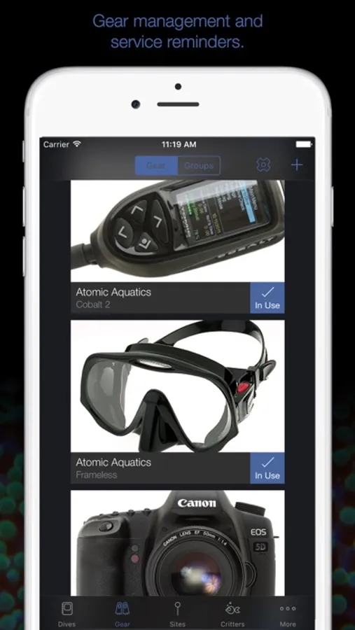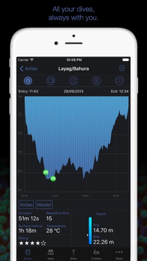 • Automatic dive site tracking via GPS. Put your iPhone in your dry bag and worry about the details when you're back on land!