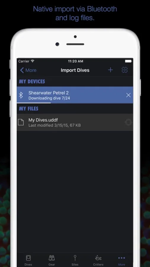• Use iCloud or Dropbox to keep your data in sync between your iPhone and MacDive for macOS.