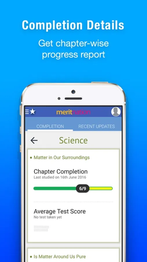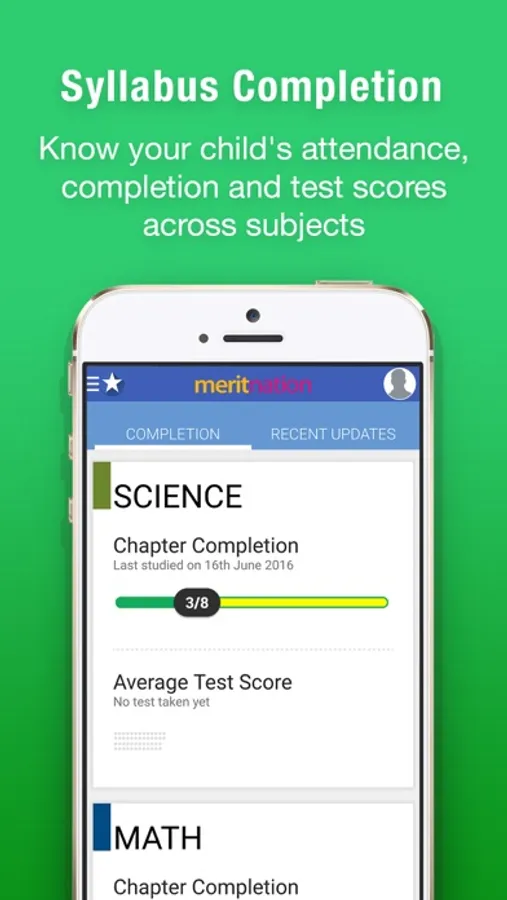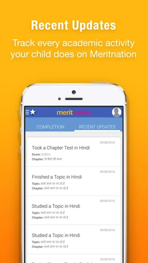 Recent Updates: Track every academic activity that your child does on Meritnation.
