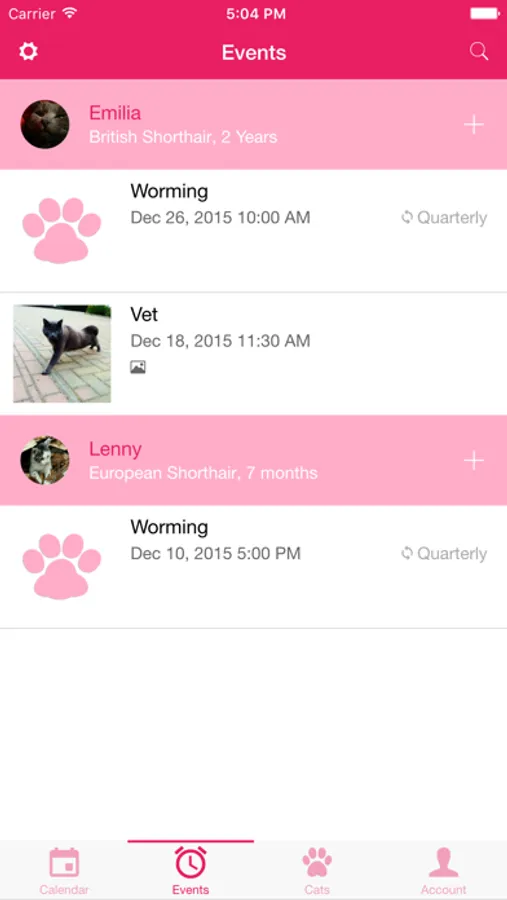 You can set recurring tasks such as worming, vaccinations or the application of an anti-tick agent and you will be easily remembered via push messages.