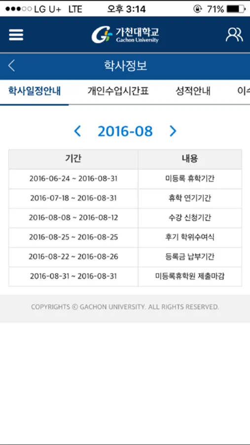 - 가천대학교 스마트캠퍼스 앱 기능 요약