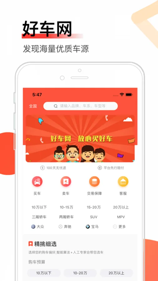 成立至今,好车网秉承着“让买车卖车更简单!”的理念,不断完善产品体验,设计提供更加简单便捷交易的产品为用户提供独一无二的消费体验,让消费者体验安全、保障、舒适和放心的购车经历,其中包括:全国覆盖面最广的厂商品牌认证二手车,针对4S经销商的“特卖好车”活动,以及针对消费者的“好车金融”产品,降低消费门槛、提升购车体验,杜绝欺诈、保障品质与售后服务。