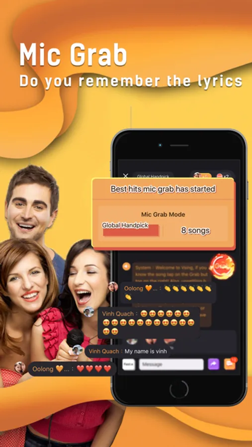 In Mic Grab, test your skills by seeing how many songs you can sing while competing with your friends. The one who grabs the fastest and sings the most accurately wins! Let's see who knows their stuff!