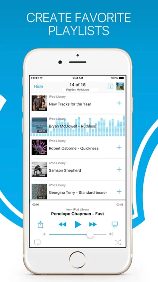 - Import podcasts & audiobooks from cloud drive, iPod Library, albums, artists, and other playlists.