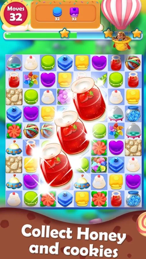 - Complete different targets to win the level before you run out of moves!