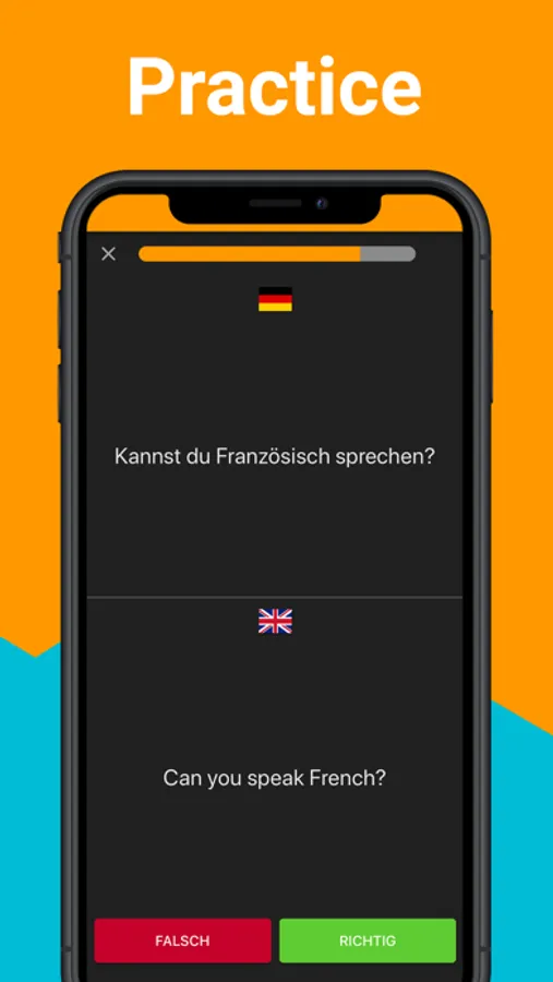 With the exercises, you playfully add new words to your vocabulary. You either have to choose the correct translation from a series of suggestions, find the correct word pair, choose the initial letter or put the letters of the translation in the correct order. Your learning progress is shown in a diagram at any time.