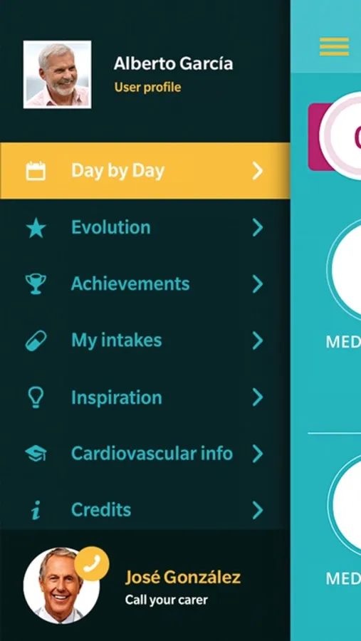When suffering from chronic cardiovascular diseases, treatment has a high rate of abandonment or mismanagement. With Day by day you can take accurate control of your medication and your caregiver will have access to all your intakes.