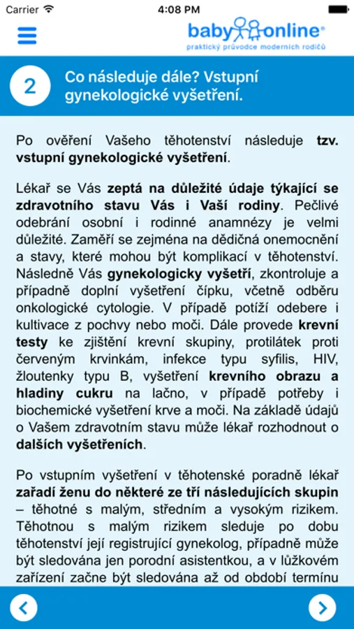 Co následuje dále? Vstupní gynekologické vyšetření.