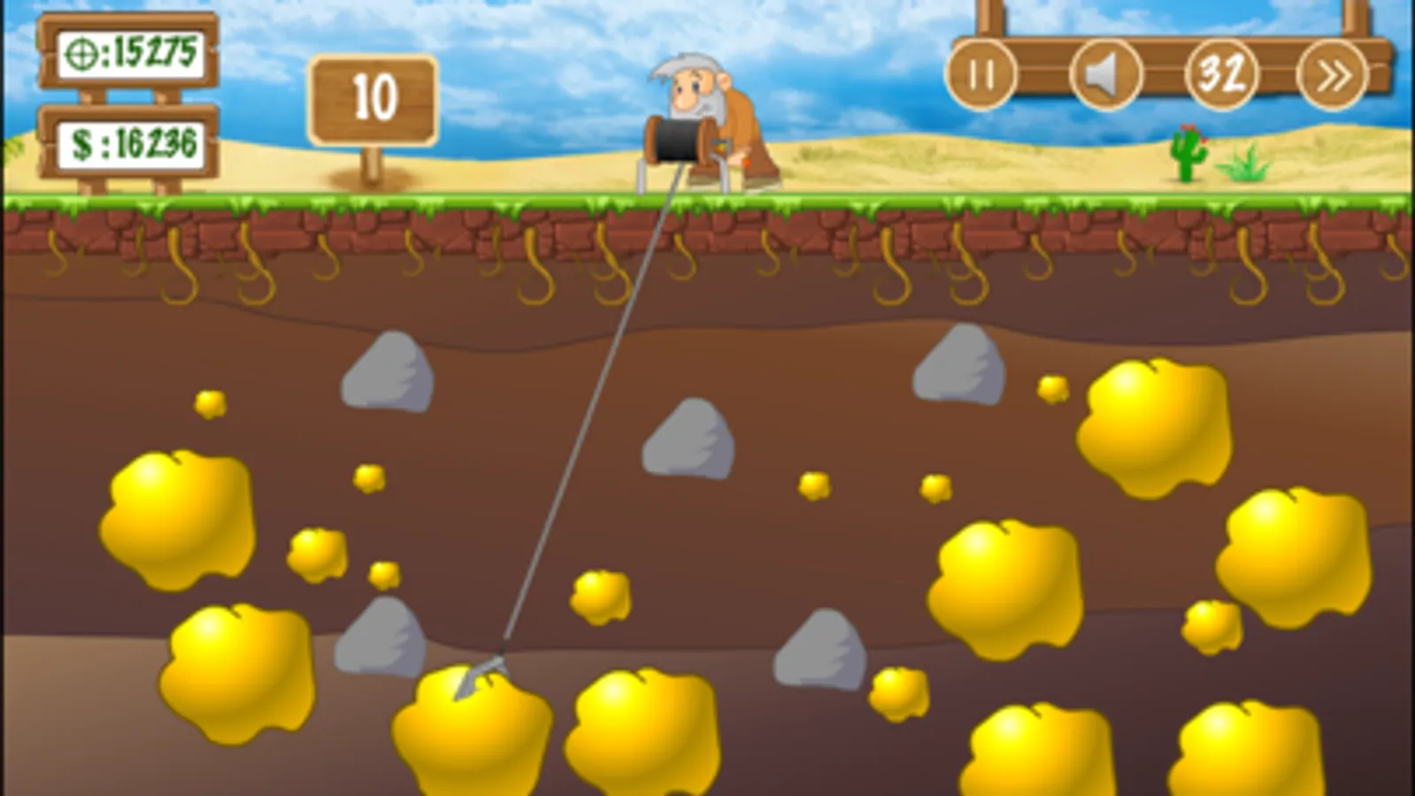 Let’s go with old man in the game Gold Miner to looking for the treasure under the ground.
