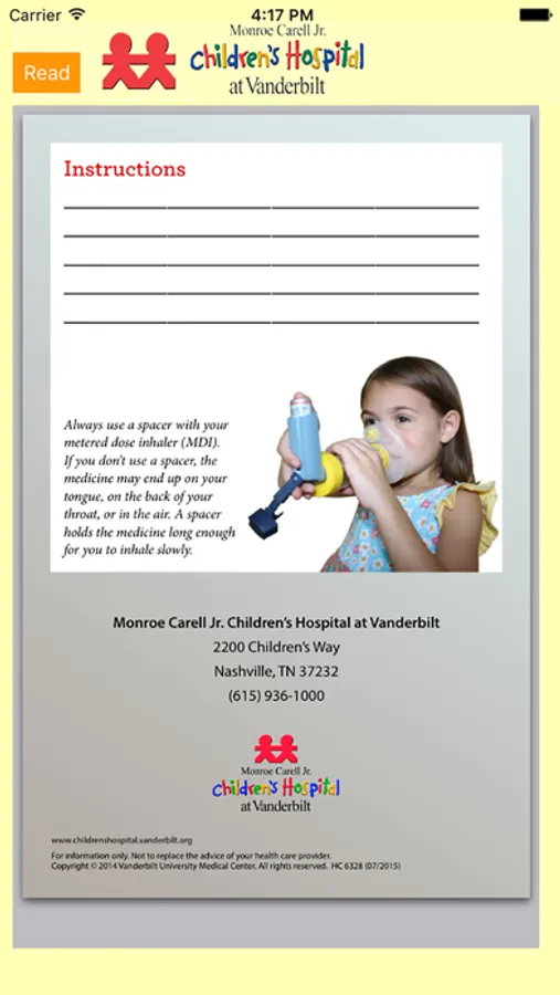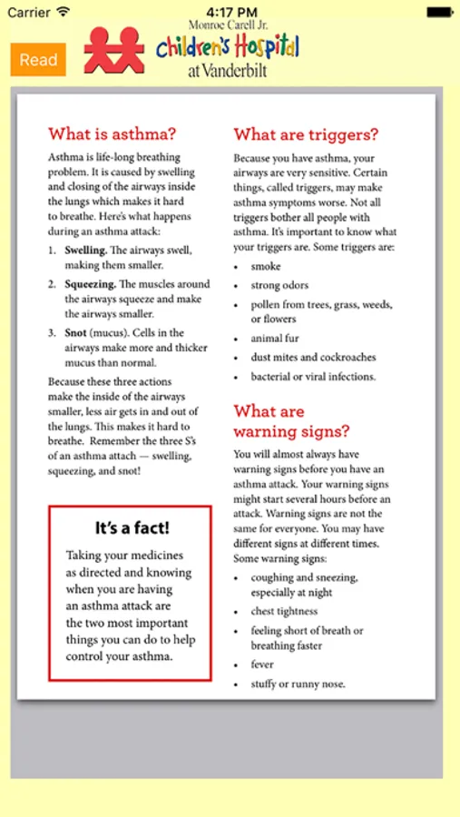 Simple Info App for Vanderbilt Children's Hospital with information for asthma suffers.