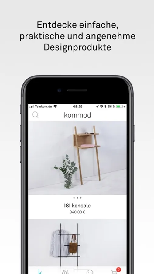 Wie in unserem Webshop kommod.de wartet auch hier ein kleines, aber feines Sortiment von Designprodukten auf Dich. Egal ob Hocker, Standgarderobe oder Vase, alle unsere Produkte sind mit viel Liebe zum Detail entworfen und produziert. Die Möbelstücke sind liebevoll verpackt und werden bequem direkt zu Dir nach Hause geliefert - ohne große Lieferzeit.
