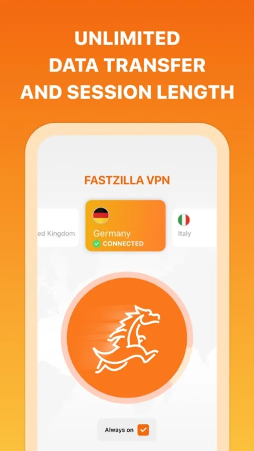 Fastzilla VPN provides you with unlimited data transfer and unlimited session length for free!