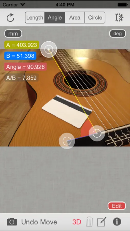 Partometer3D is camera measure app for area, perimeter, length, ratio, circle parameters, angle measurements. It can be used as a ruler or tape measure for accurate measurements on pictures / photos. This app allows users to make measurements in any defined plane in 3D space.