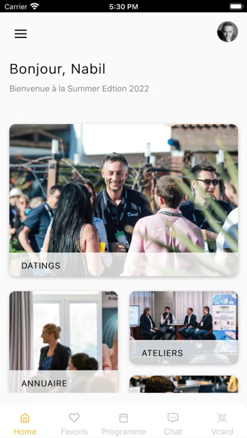 • participer aux sessions de BigBoss Dating et Meeting: voir votre programme, voter et voir vos votes