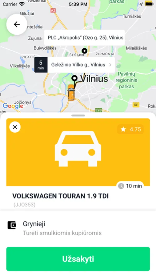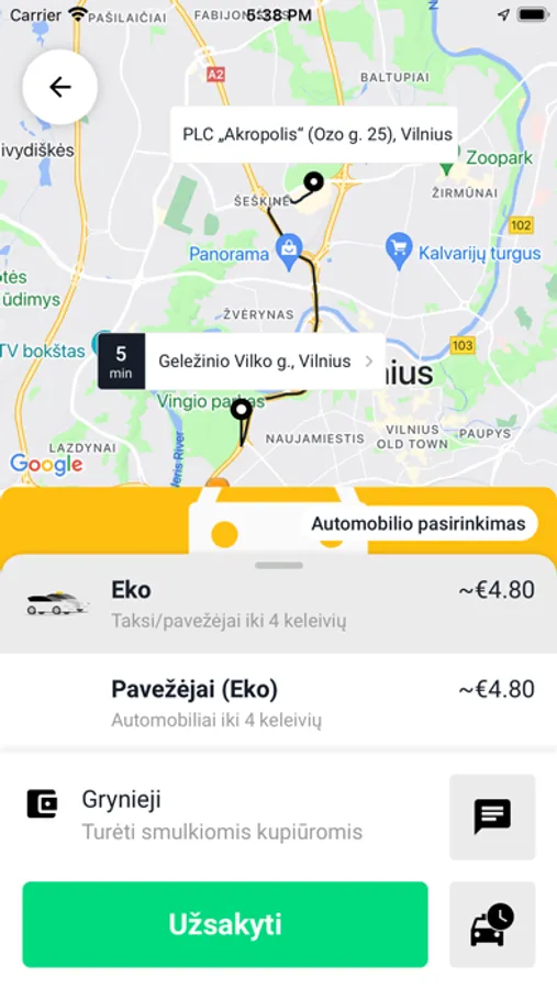 • Galimybė apmokėti per programėlę (kreditine ar debetine kortele) arba grynaisiais pinigais