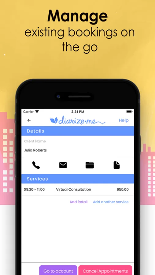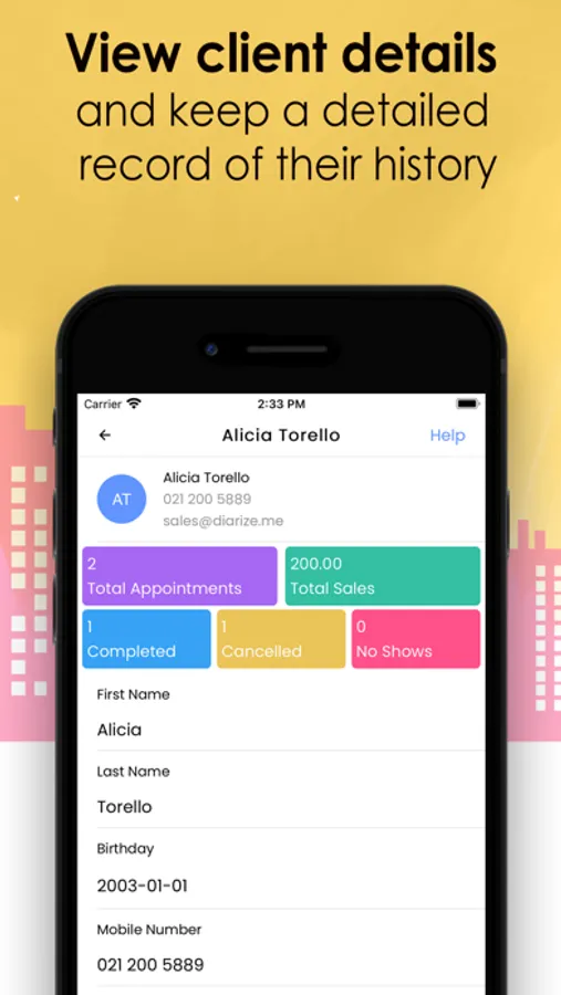 Diarize Me allows you to manage your bookings, sell retail products, keep track of your clients, accept payments, and run powerful reports.