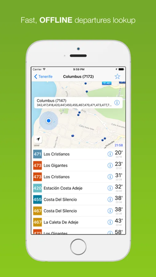 The perfect travel companion for your trip in Tenerife! It contains all public transport stations and buses; all of these in your pocket !