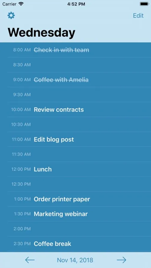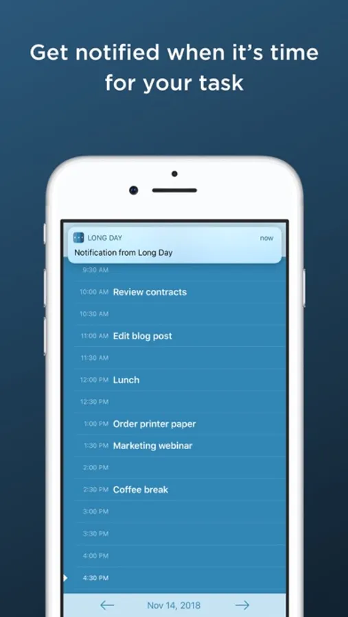 Plan your day quickly with Long Day. Add tasks to each time block without having to close your keyboard. Long Day is designed for the hour by hour tasks you have to get done today, so you can keep your other calendar app free for far off appointments and birthdays.