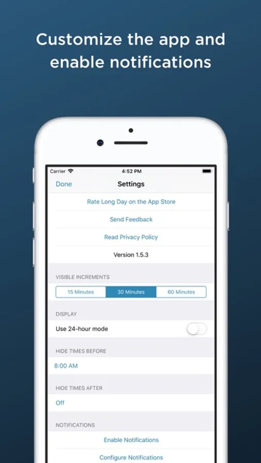 • Plan your day in in 15 minute, 30 minute, or hour long intervals.