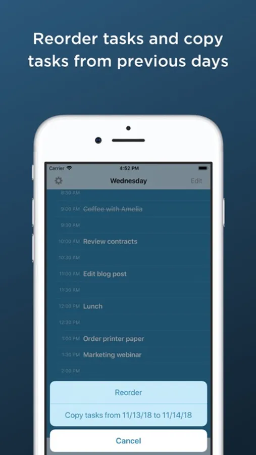 • Quickly copy incomplete tasks from the previous day to your currently selected day.