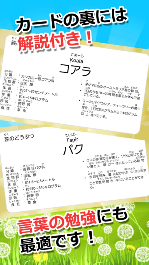 また、フラッシュカードとしてお使い頂くことでお子様の右脳を鍛えることもできます。
