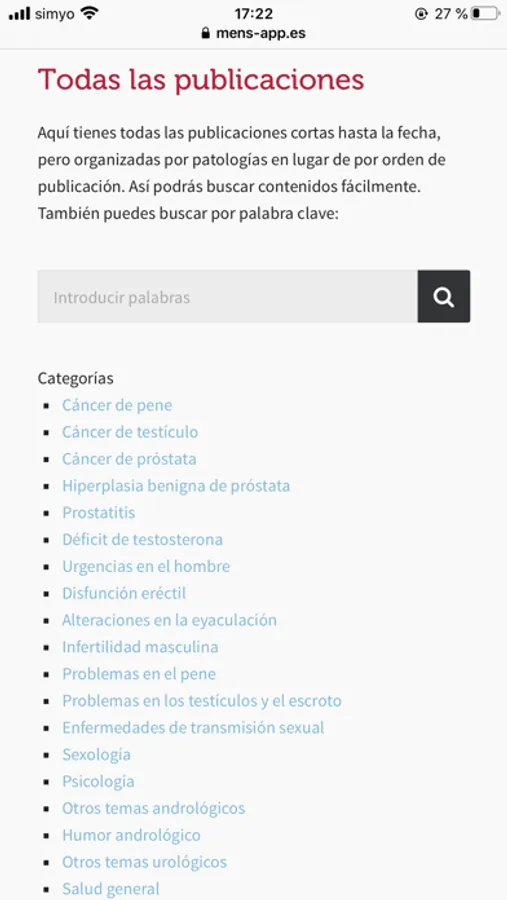 Por eso en Men’s App el objetivo del Dr. Juan Pablo Burgués es concienciar y divulgar información sobre problemas de salud que afectan a los hombres, con un lenguaje sencillo y entendible por cualquiera. También econtrarás algunas herramientas útiles: