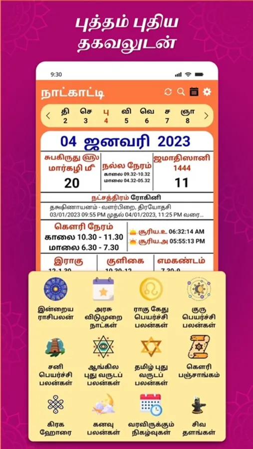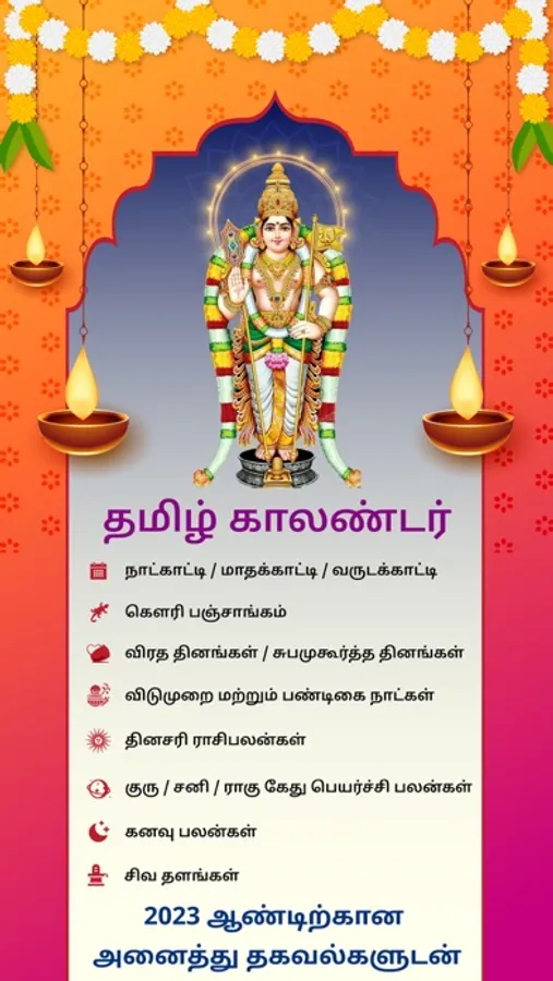 Tamil Daily Calendar 2023 will help you to keep track of all our auspicious days and align you with various auspicious timings. This app is a great tool that helps you to plan your days for success.