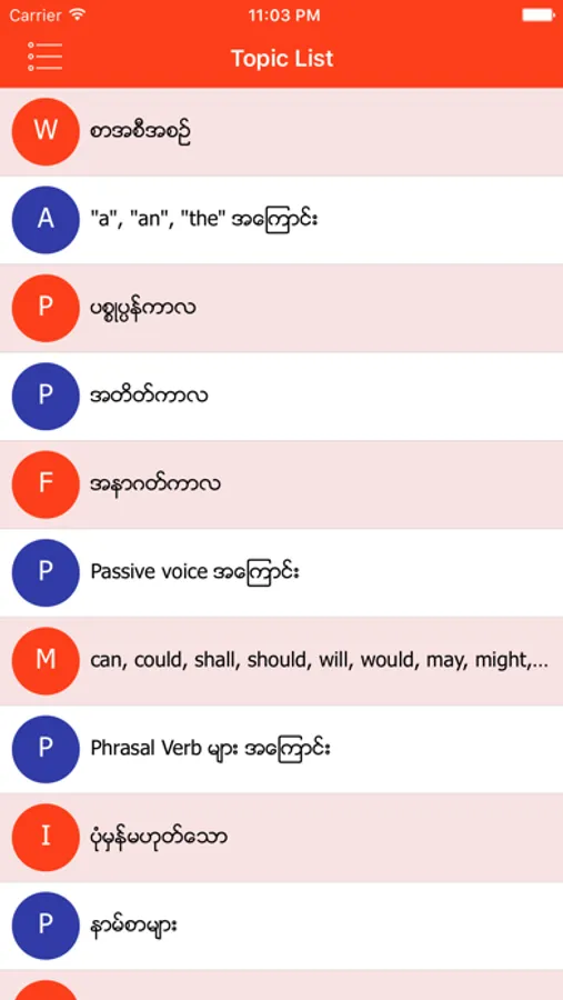 This application is for all myanmar people who want to improve and learn english language with myanmar meaning.