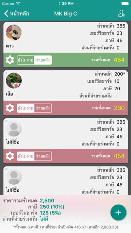 * เวอร์ชันฟรี จำกัดจำนวนคนหารไว้ไม่เกิน 5 คน และไม่สามารถแชร์ผลการคำนวณได้