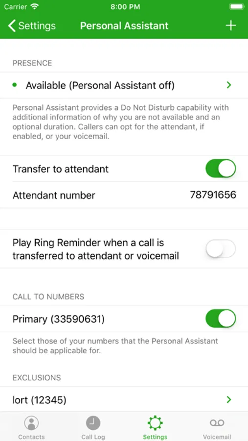 - Call Forwarding - Not Reachable